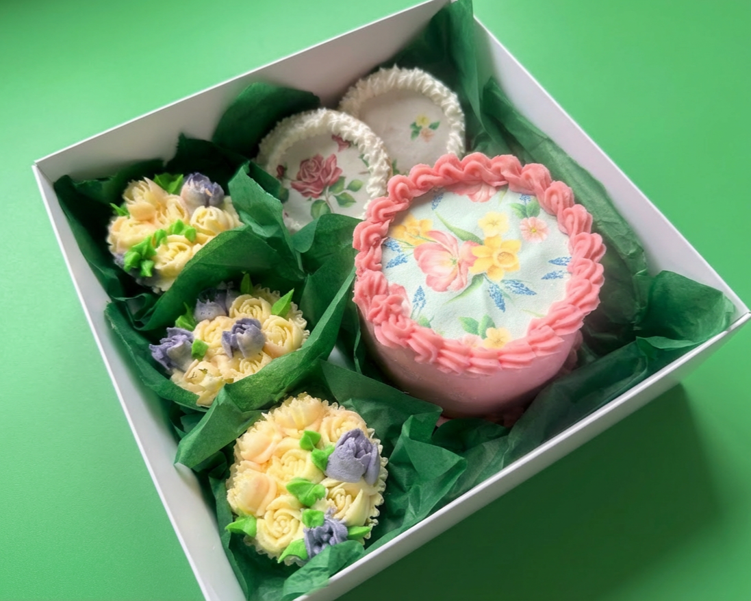 Treat your mum to a stunning Spring Garden Cake Bento Box, handcrafted in North Wales and inspired by the beauty of the season. This special Mother’s Day edition includes: